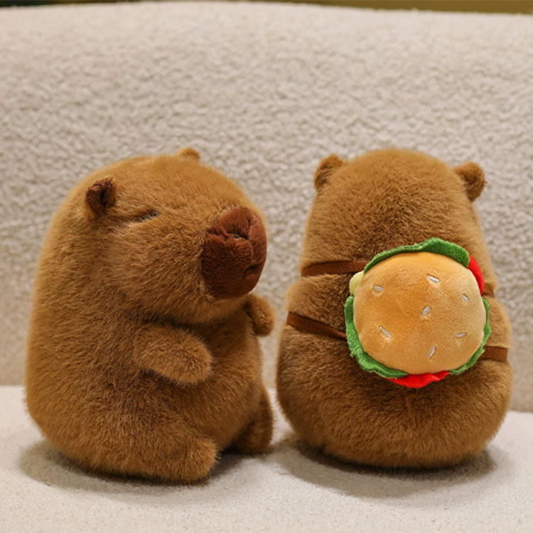 Capybara sang trọng dễ thương có màu nâu, chiếc ba lô được mặc với nó có màu sáng, thu hút trực quan hình dạng tròn chú ý của khách hàng, sử dụng các loại vải sang trọng, kết cấu và mịn màng và cảm thấy rất thoải mái. Chúng được trang trí với những chiếc ba lô khác nhau trên cơ thể, khiến chúng trông thậm chí còn dễ thương hơn. Nó có cảm giác giống như một capybara sống động. Kích thước tổng thể của họ là khoảng 20 cm. Phong cách này đã được bán rất tốt gần đây.